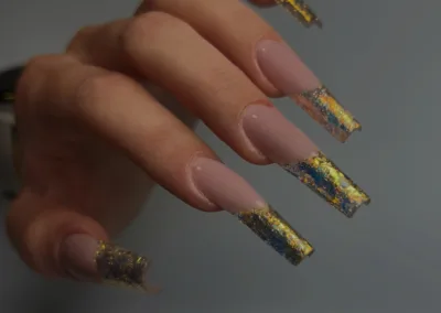 - Auffüllen des Nagelbettes mit Acryl oder Gel