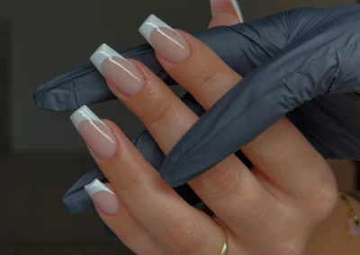 - Verstärkung des Naturnagels durch eine dünne Schicht Acryl oder Gel